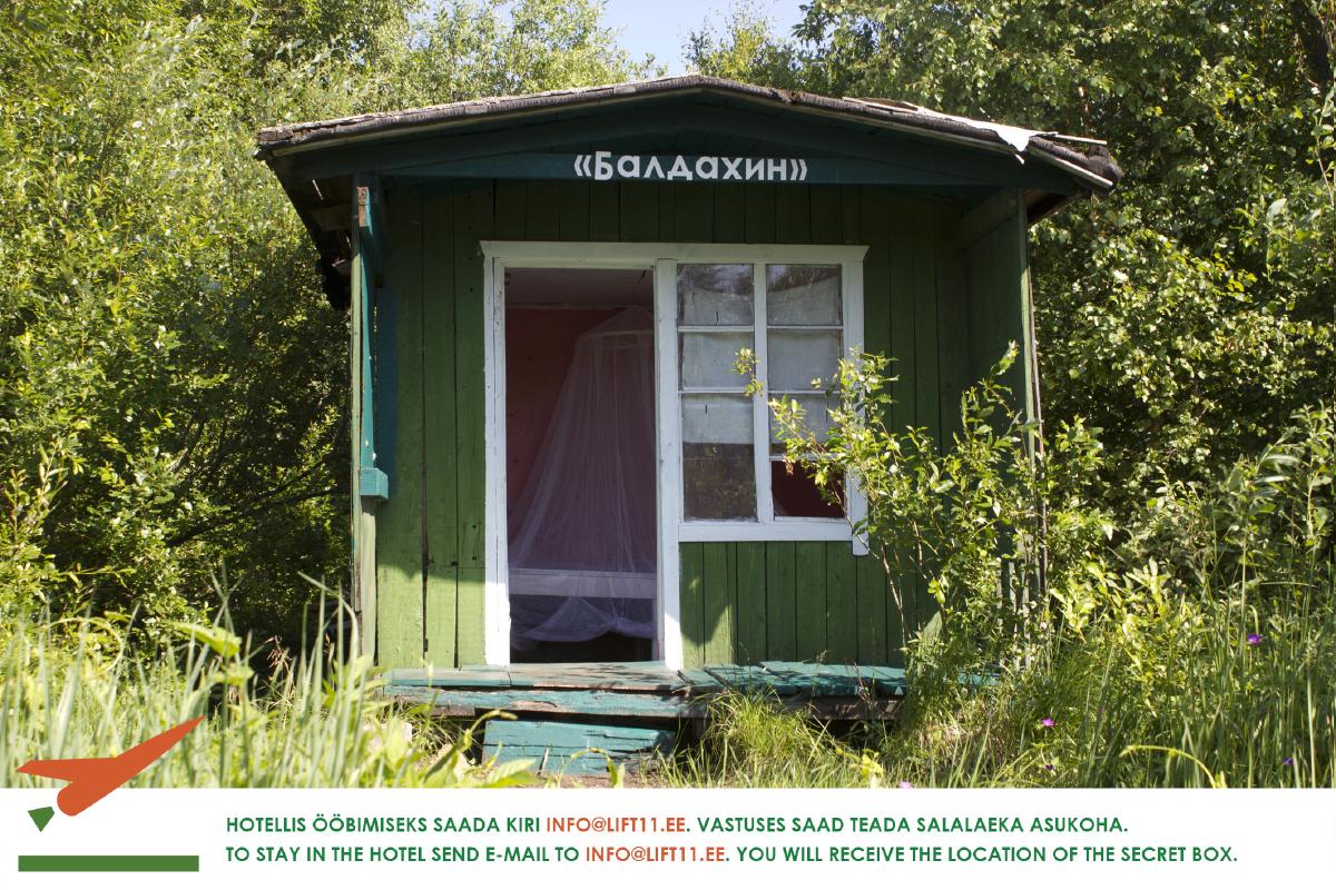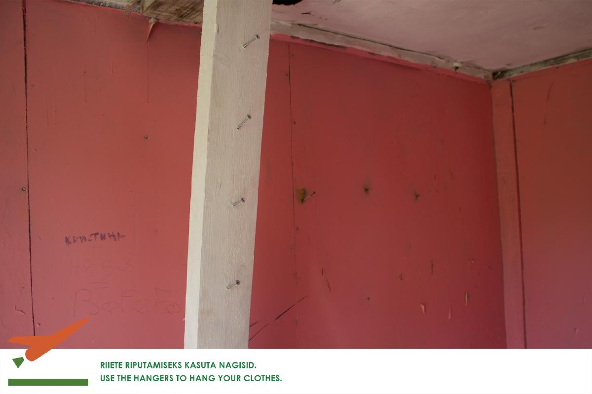 My project in Soodevahe started with one dacha turned into a airport monitoring center. The name “Linnujaam” is a wordplay that means bird watching station (Lennujaam means airport). As I became kind of local there, I understood that You can’t do a project there alone. Besides all my friends that helped to rebuild the dacha there was strong input also from the district itself. As most of the Soodevahe houses, Linnujaam was also abandoned during the winter. In the beginning of the spring I could witness a new aesthetics of the house. The outer layer of the dacha was stolen and the house looked completely different. The dacha was originally build by airport worker who used soviet airport advertising materials to create the inner walls. All this became visible and completely changed how the house looked. These panels are also featured in this exhibition.